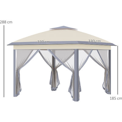 Dimensões do produto | Quadro: Aço Tecido: Poliéster Tamanho:L330 x W330 x H288cm Peso: 18,7 kg |