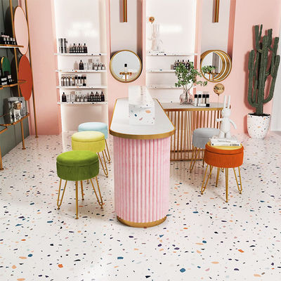 Logotipo personalizado Armazenamento de veludo Calcanhar otomano com pernas de metal e banquinho redondo de apoio de pé